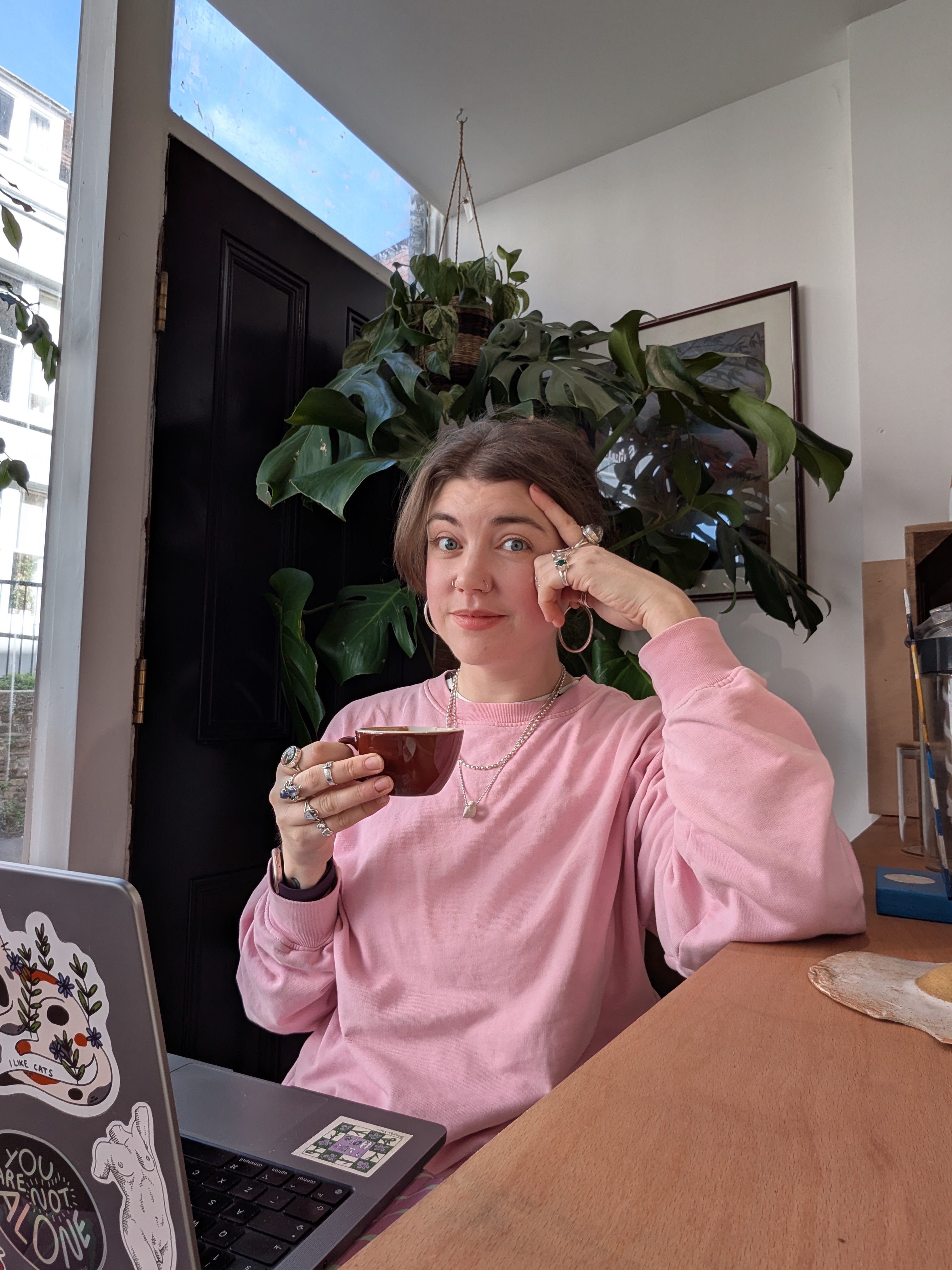 Taking photos of my cat. Soldering silver with a blow torch. Soaking hag stones in hot water and Fairy liquid bubbles, hoping it will take the salty fishy stink off. Shaking together cocktails through ice in stainless steel. Sitting in the parents’ front room with snacks, surrounded by sewing ladies. Trying to get more than 4 likes on a LinkedIn post. Buying too many small tomatoes named by fruit when they themselves are fruit (cherry and plum). Rearranging cookbooks and asking the internet whether they should stand or be stacked on the shelf. Defacing a political pamphlet with gel-penned capital letters and queer stickers. Buying a bespoke Mother’s Day bouquet, then walking through town and silently bonding with everyone who admires it as they pass by. Popping brain pills. Reminiscing about nights out in 2012, when nothing mattered except your level of commitment to a costume, or the likelihood of you being the unlucky drinker of the dirty pint. Taking calls from behind a coffee machine, and looking really cute while doing it. Pitching myself, boldly and bravely. Releasing work-related rage productively — cleaning and tidying my flat, consolidating tote bags of charity donations, recycling all those cardboard boxes I saved but don’t really need, and starting work on an enormous compost patch at the bottom of my garden.